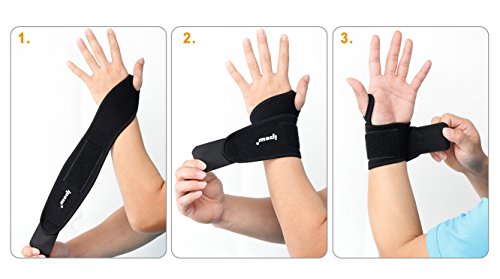 Set di 2. Ogni fascia ha un ciclo del pollice che rende il tutore al polso facile da indossare e da togliere.