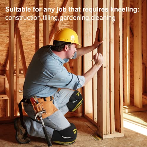 IPSXP Ginocchiere Professionali con Imbottitura in Confortevole Gel e Cinghie Regolabili,per Lavoro, Giardinaggio, Pulizia, pavimentazione, Nero, giallo