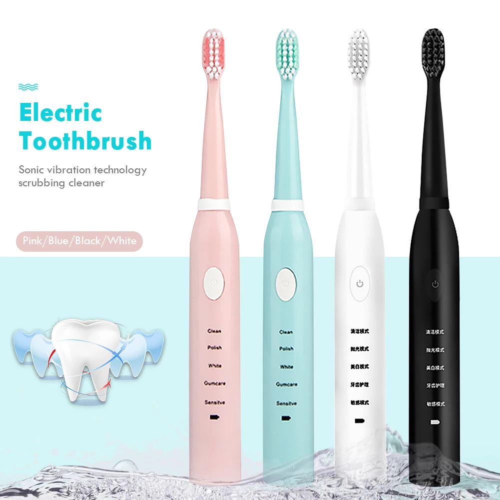 IPX7 Waterproof Smart Timer Ultrasonic Vibration Electric Toothbrush Portable USB Rechargeable Soft Hair Teeth Cleaning Brush