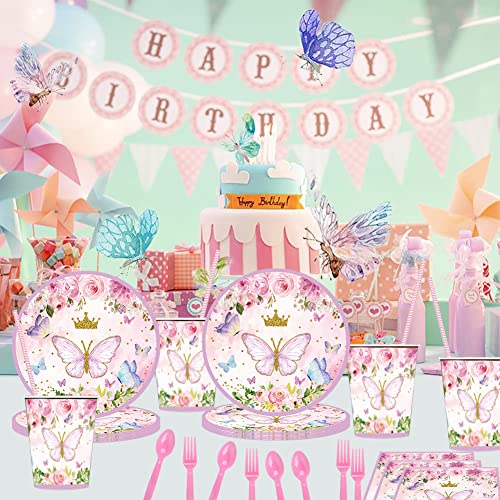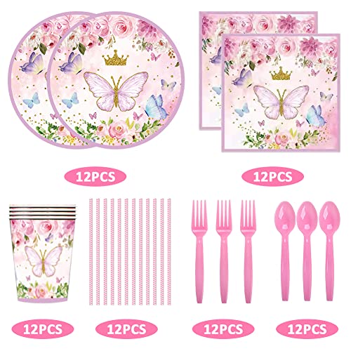 IQEPXTGO 72 PCS Posate per Feste USA E Getta, Decorazioni per Feste di Compleanno con Farfalle da Giardino Compresi Piatti Forchette Cucchiai Tazze Cannucce per Campeggio, Picnic E Celebrazioni