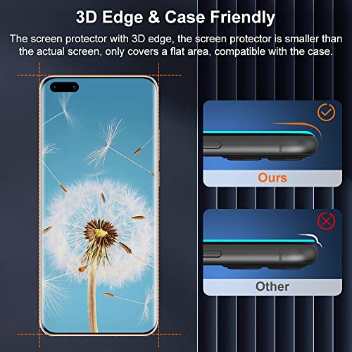 【Copertura Completa 3D】la pellicola in vetro temperato per Huawei P40 Pro utilizza una tecnologia laser di precisione. Il bordo curvo 3D copre al 100% lo schermo del Huawei P40 Pro, senza crepe tra lo schermo e il bordo, previene efficacemente la polvere. Compatibile con la maggior parte delle custodie per cellulare.