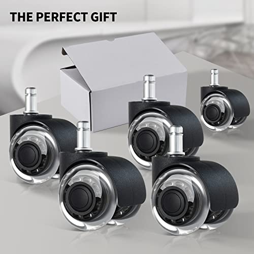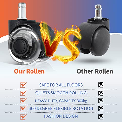 ✔Resistenti e di alta qualità - Le ruote di ricambio per sedie da ufficio hanno un design a quadruplo cuscinetto a sfera. Le nostre ruote parquet sedie ufficio hanno una forte capacità portante (la capacità portante massima di 5 ruote può raggiungere 300KG). Le ruote girevoli sono dotate di copertura della ruota a prova di polvere (design della copertura in gomma a prova di polvere su entrambi i lati della ruota, che impedisce efficacemente la polvere e i capelli coinvolti).