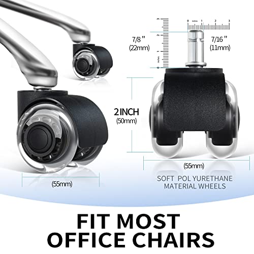 IQWTU Rotelle da Ufficio per Sedie, 11 X 22MM Ruote Sedia Ufficio Parquet 50MM PU Rotelle per Sedie Girevoli da Ufficio con Quattro Cuscinetti, Girevoli Silenziose, Carico 300kg