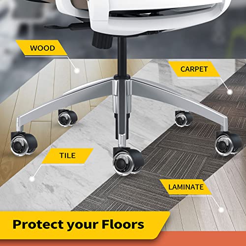 ✔Sicuro per tutti i pavimenti - Non c'è più bisogno del tappetino per sedie! Le nostre ruote sono realizzate in poliuretano morbido che garantisce di non lasciare segni neri o graffiare i pavimenti. La nostra rotelle da sedia protegge tutti i tipi di pavimento come legno, parquet, laminato, vinile, piastrelle e moquette. Rotolamento fluido senza lasciare tracce sul terreno.