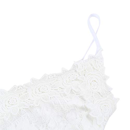 IQYU Abito elegante con scollo a V, per feste, club e discoteca, abito estivo in stile boho, anni '60, da donna, corto, estivo, con scollo a V, abito da sera elegante, bianco, XXL