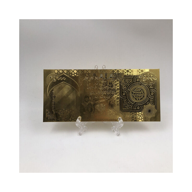 1 pc Iraq Currency Paper Souvenir in plastica 25000 denari in collezioni di banconote placcate dorate con supporto,1 pc with stand 1