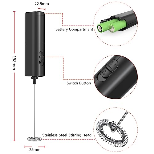 IraXpro Montalatte elettrico, montalatte portatile, frusta elettrica per caffè, frusta elettrica a mano, 2 batterie AA, per caffè, cioccolata calda, crema (nero)