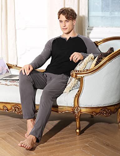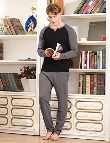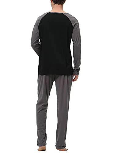 Irdcomps Pigiama Uomo Cotone Invernale Lungo Pigiami Due Pezzi da Uomo Leggero per Autunnale Invernali Maniche Lunghe Set Manica Lunga Comodo Abbigliamento Casual da Casa Loungewear Nero L