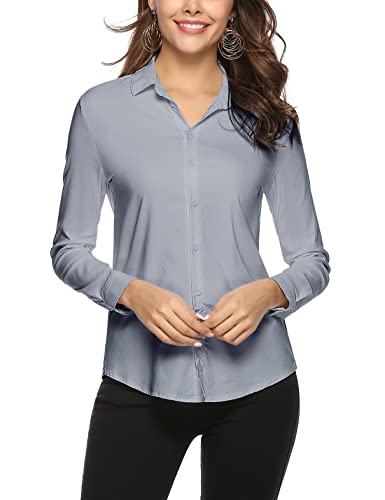 Irevial Camicia da Donna Elegante Chiffon Bluse Basic Shirt Camicetta a Manica Lunga Ufficio Grigio M