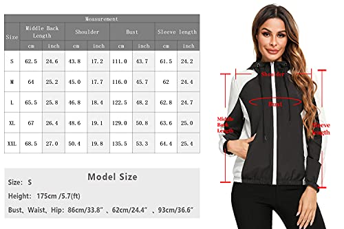 Design multifunzionale: Giacca antipioggia a vento un design abbinato ai colori, fodera in rete, cappuccio con coulisse, cerniera anteriore, polsini e orlo elastici, due tasche laterali con cerniera, non solo può tenere le mani calde, ma può anche contenere telefoni cellulari e piccoli, semplici e oggetti pratici.