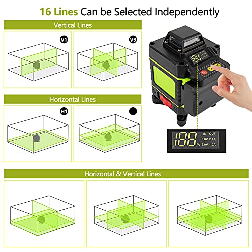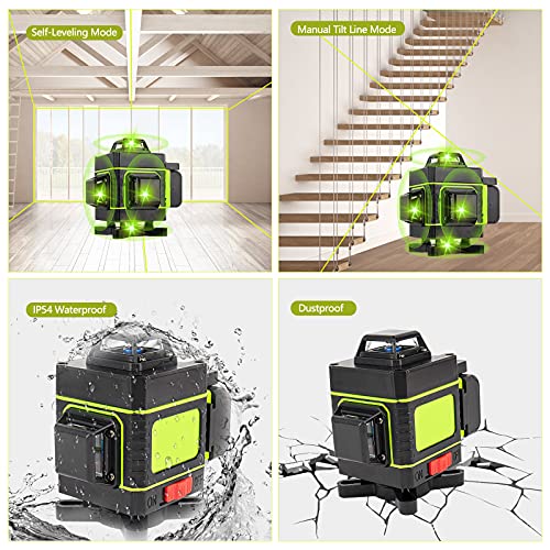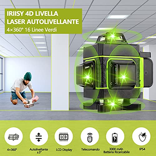 Iriisy 4D Livella Laser Autolivellante 360 16 Linee Verdi a Croce Orizzontale e Verticale Generatori di Linea Laser con Telecomando