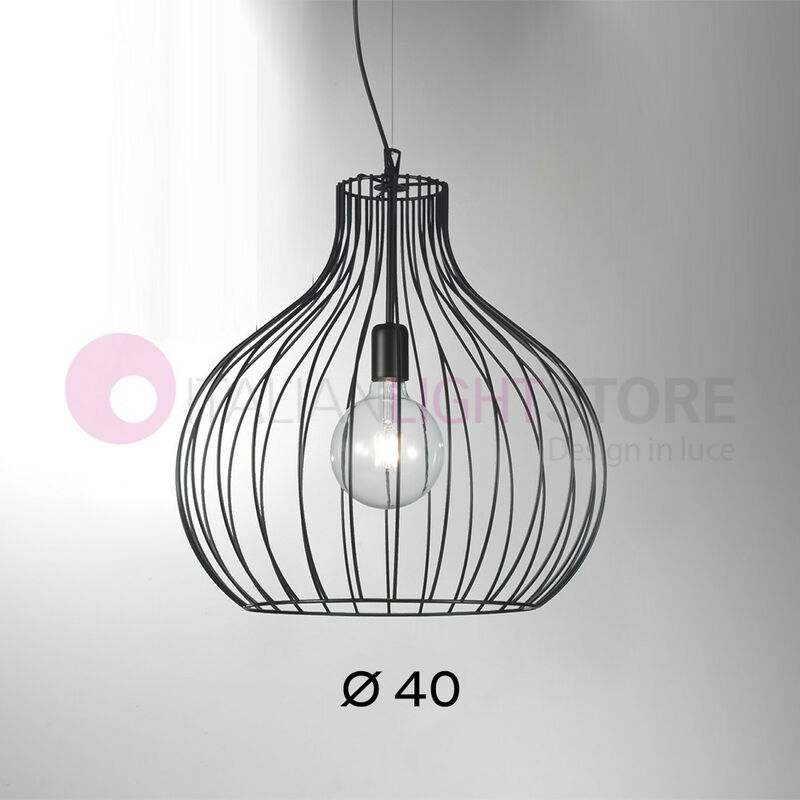 Lampada a Sospensione a 1 luce in stile vintage, con gabbia metallica colore NERO. Lampadario a Sospensione in stile classico vintage e minimal, con struttura in ferro sagomato a mano e colorato NERO. La collezione MAYA si distingue per il paralume, composto da fili metallici disposti a gabbia e rifiniti in nero, colore moderno e di tendenza, adattabile ad ogni ambiente;