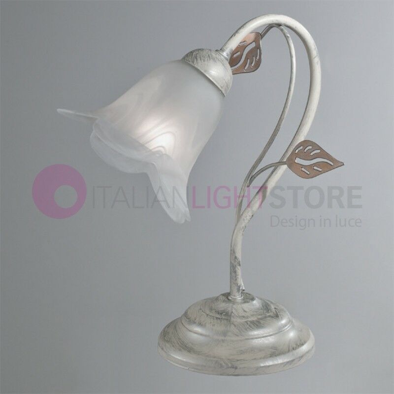 Lampada da Tavolo in ferro battuto in stile classico fiorentino, decorato AVORIO-ORO-ARGENTO. Lumetto per comodino a 1 luce in stile classico rustico, con struttura in ferro battuto decorato artigianalmente in AVORIO-ORO e ARGENTO, ideale per illuminare cucine, saloni e camere in stile fiorentino,classico e rustico. Diffusori in vetro alabastro bianco. La struttura del lampadario è realizzata in ferro sagomato verniciato. La collezione PIENZA comprende il lampadari a 5, l' applique a parete a 2 luci, le plafoniere a soffitto e la lampada da tavolo (VEDI CORRELATI). ELETTRIFICAZIONE: E14 - 1 X MAX 40W Lampadine non fornite (possono essere utilizzate lampadine a basso consumo o led con attacco a vite mignon E14);