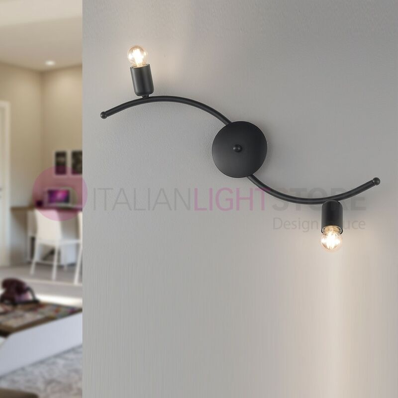 Lampada a soffitto e parete a 2 luci in stile industriale in metallo verniciato nero. Lampada a Soffitto e parete, Plafoniera a 2 luci in stile industriale, con struttura in metallo sagomato a mano e verniciato nero. La collezione SNAKE comprende le plafoniere a 6, 4 e 2 luci ( VEDI CORRELATI ), ed è ideale per illuminare ambienti moderni, contemporanei;