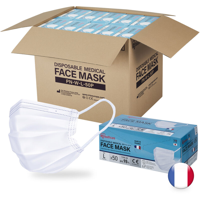 Proteggete voi stessi e i vostri cari con una maschera monouso approvata secondo la norma EN 14683:2019. La tripla piega e la forma a V di facile applicazione garantiscono una copertura ottimale del viso, in particolare del naso e della bocca. Il ponte nasale aiuta inoltre la maschera ad adattarsi alla forma del viso ed evita l'appannamento quando si indossano gli occhiali. Le bande elastiche sono state progettate per offrire un comfort ineguagliabile. Sono resistenti, ma anche morbidi e impediscono che il viso o le orecchie si irritino anche dopo un uso prolungato della maschera. Infine, la maschera è anche a prova di schizzi. Iris Ohyama chiede di gettare la maschera nella spazzatura dopo l'uso, riducendo così i rifiuti nelle strade. ● Maschera medica monouso, approvata EN 14683:2019, standard CE, tipo II. Efficienza di filtrazione batterica (BFE) 98%. ● Easy Fit V-Design: 3 strati per adattarsi alla forma del viso: dal naso al mento, le guance sono perfettamente coperte. ● Elastico