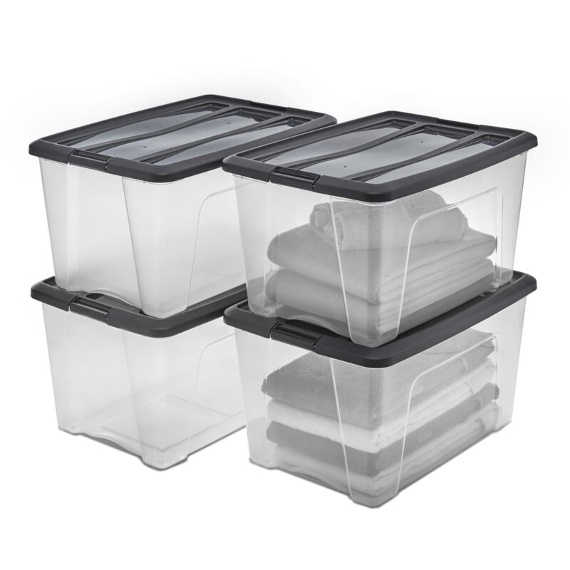 Iris Ohyama, Box, Kunststoff-Organizer, 4er-Set, 45 l, feste Griffe, stabil, luftdicht, Schlafzimmer, Wohnzimmer, Büro - New Top Box NTB-45 - Schwarz