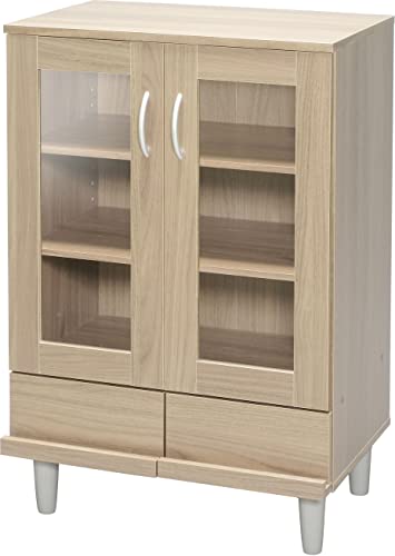 Iris Ohyama, Armadio in vetro/Credenza con cassetti e ripiani/Armadio in legno/Armadio con ante, Ripiano regolabile in altezza 3,2 cm, cucina, soggiorno - Cabinet - KPB-9360 - Marrone chiaro
