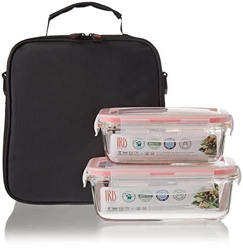 Iris Ohyama Basic Borsa Porta Alimenti con 2 contenitori, Tessuto, Nero, 21x13.5x22 cm