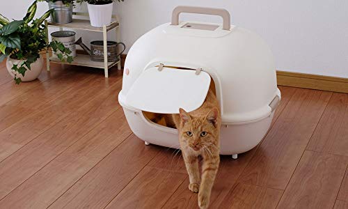 Iris Ohyama con cappa e grande ingressonessun odore e fuoriuscita di rifiuti, fessura per filtro deodorante, portatile, paletta inclusa per gatto - Cat Litter Box WNT-510, Beige