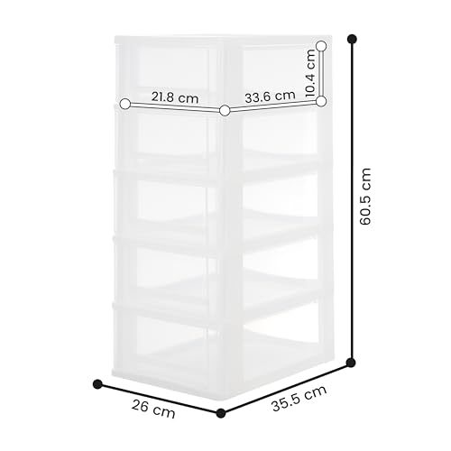 Iris Ohyama Cassettiera in Plastica, Portaoggetti, 5 Cassetti Medi, Bianco, Apertura Facile, Formato A4, A5 e A6, Organizzatore, Per Ufficio, Scuola, Cartoleria, Senza BPA, Contenitore, DDOCH-2005