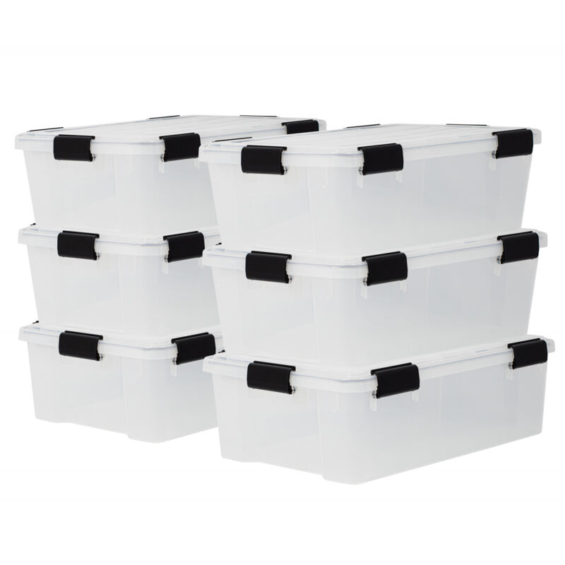 La gamma "DDAT" di Iris Ohyama consiste in scatole resistenti alla polvere e all'umidità grazie alla guarnizione in silicone e ai fermi del coperchio. La trasparenza delle scatole di plastica permette di vedere il contenuto senza doverle aprire. Possono essere utilizzati non solo in ufficio o in soggiorno, ma anche in un capanno da giardino o in un garage, senza il rischio di infiltrazioni di umidità. I DDAT possono essere impilati e integrati. I volumi disponibili sono 28L, 50L e 70L. Nota bene: queste scatole sono resistenti all'umidità. Tuttavia, se vengono immersi in acqua, non sono ermetici. ? IL PRODOTTO CONTIENE: 1 Lotto di 6 contenitori con coperchi ermetici - Made in France ? DIMENSIONI: Esterne: 59 x 39 x 19 cm (L x P x A) ⚖️ CAPACITÀ: 30 L per scatola | 6,2 kg ✔️ UTILIZZO: perfetto per ✔️ UTILIZZO in garage, cantina o soffitta. ✔️ AIRTIGHT: l'anello di chiusura ermetico ti permette di proteggere i tuoi effetti personali da umidità e polvere. IMPILABILI E RESISTENTI: Questi