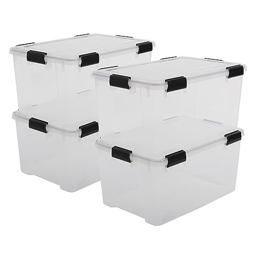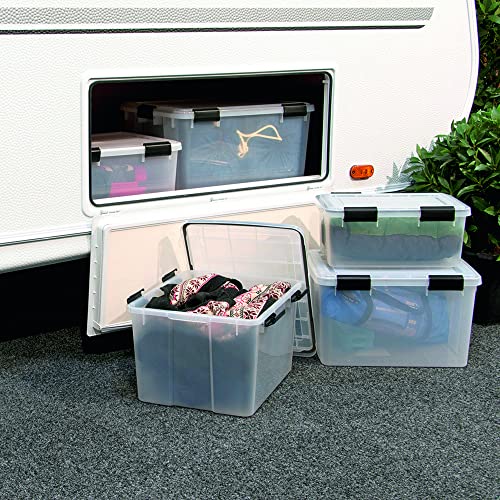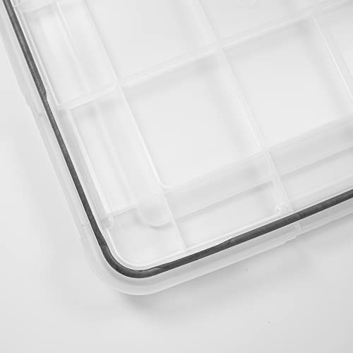 Iris Ohyama, Contenitori di plastica impermeabili da 50L con coperchio, Lotto di 4, AT-L, Trasparenti, Impilabili, Clip di chiusura - L59 x P39 x A29 cm