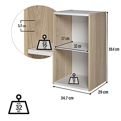 "DIMENSIONI: Esterno: L 35 x P 29 x A 59,4 cm |Piani interni: L 32 x P 27 cm |Altezza regolabile, distanza verticale tra i fori 3,2 cm.