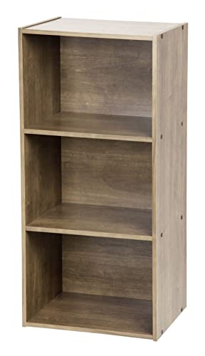Iris Ohyama, Mobile Contenitore, Libreria, 3 Ripiani Fissi, Massello, Design, Multifunzionale, Ufficio, Ingresso, Camera, Soggiorno, Basic Storage Shelf CX-3, Marrone Cenere