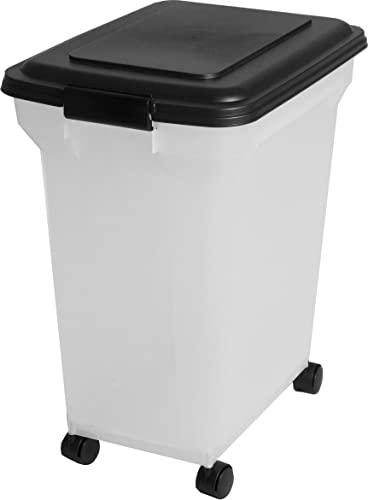 Iris Ohyama, Scatola per crocchette, Contenitore ermetico per alimenti, Ruote, Pala, L46 x P34 x H50,5 cm, ATS-L, Nero