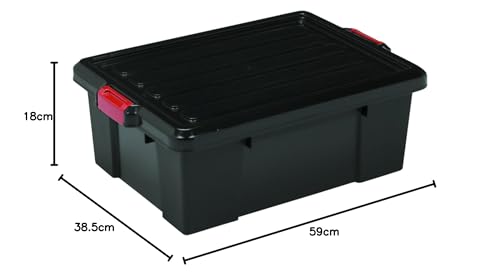 Iris Ohyama, Set di 3 scatole fai da te, 25 L, con chiusura a scatto, impilabile, garage - Power Box SK-230 - Nero