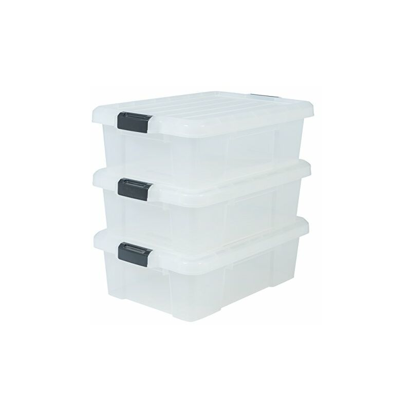 Iris Ohyama Set di 3 scatole fai da te, 25 L, con chiusura a scatto, impilabile, garage - Power Box SK-210 - Trasparente 25LColor: Transparent;