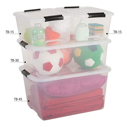Iris Ohyama, Set di 6 scatole di immagazzinaggio, 45 L, con chiusura a scatto, impilabile, soggiorno, camera da letto, garage - Top Box TB-45 - Transparente