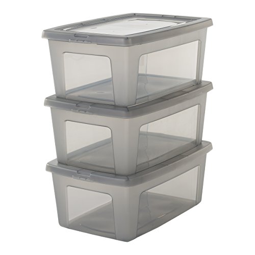 Iris Ohyama, Set di 3 scatole di immagazzinaggio, 11 L, trasparente, impilabile, soggiorno, camera da letto - Modular Clear Box MCB-11 - Grigio