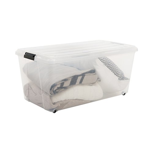 Iris Ohyama Set di 4 scatole impilabili con manici e coperchio, 29 l, trasparenti