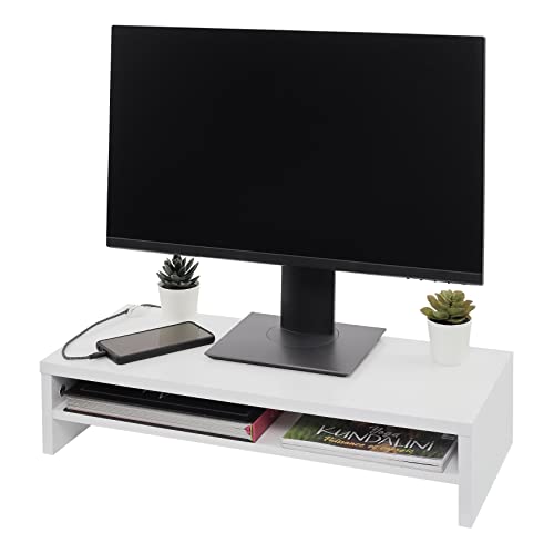 Iris Ohyama, Supporto per monitor/Rialzo per schermo Legno/Rialzo per schermo del computer Supporto per scaffale, Ergonomico, PC, Ufficio, Soggiorno, Monitor Stand Shelf MS-590S, Quercia Bianco