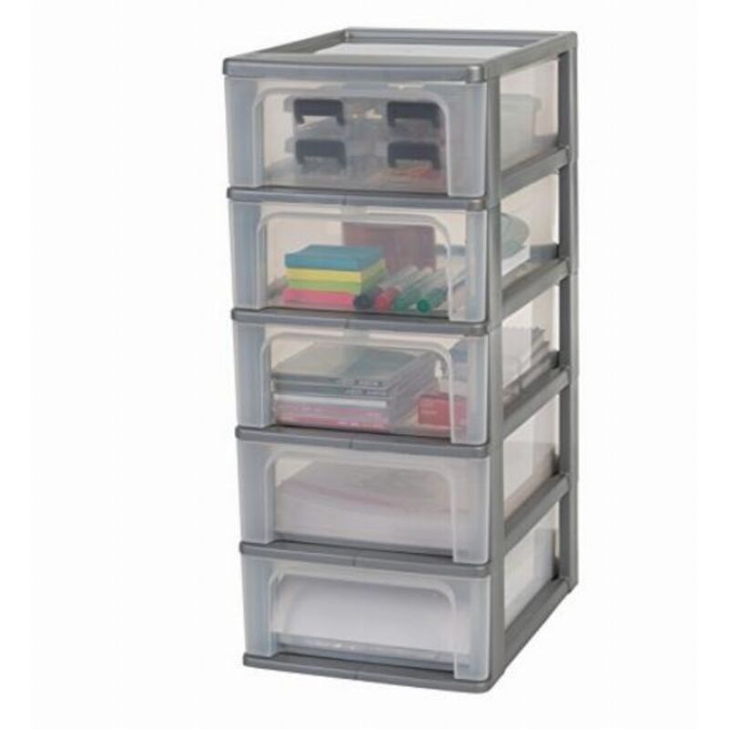 Iris Ohyama, Torre, Cassettiera, Organizzatore in plastica con maniglia ergonomica, 7L, 5 cassetti, Cestini estraibili, Senza BPA, Ufficio, Camera da letto, Soggiorno, OCH-2005, Argento