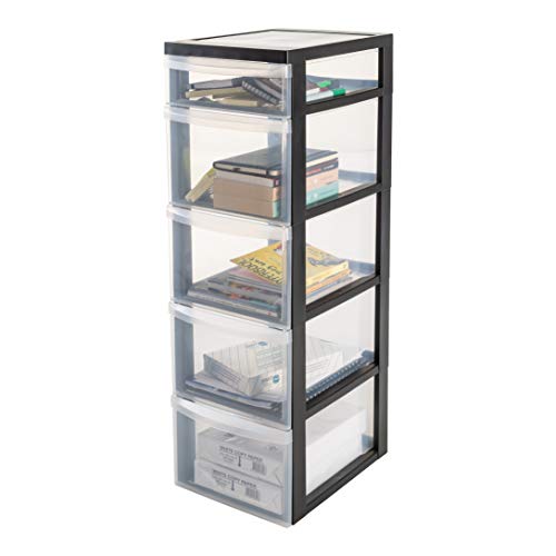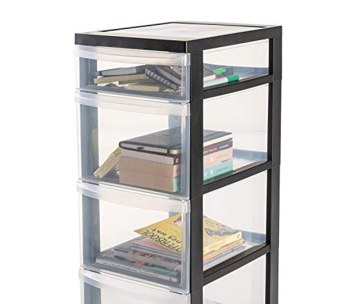 Iris Ohyama, Torre portaoggetti, Organizzatore in plastica, 5 cassetti, 4 x 15 L + 1 x 7 L, Multifunzionale, Ruote, Solido, Ufficio, Soggiorno, Camera da letto - Design Chest DC-314 - Nero
