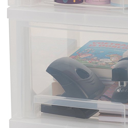 Iris Ohyama, Torre di stoccaggio, 5 cassetti (1 x 7 L + 4 x 16 L), con ruote, maniglie ergonomiche, ufficio, Garage, bagno - Smart Drawer Chest SDC-314 - Bianco smerigliato