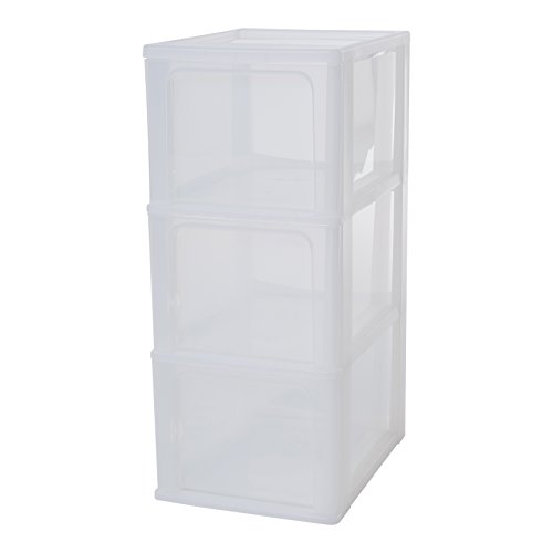 Iris Ohyama, Torre di stoccaggio, organizzatore, 3 cassetti da 13 L, formato A4, cassetti trasparenti, ufficio, soggiorno - Organizer Chest OCH-2300 - Bianco