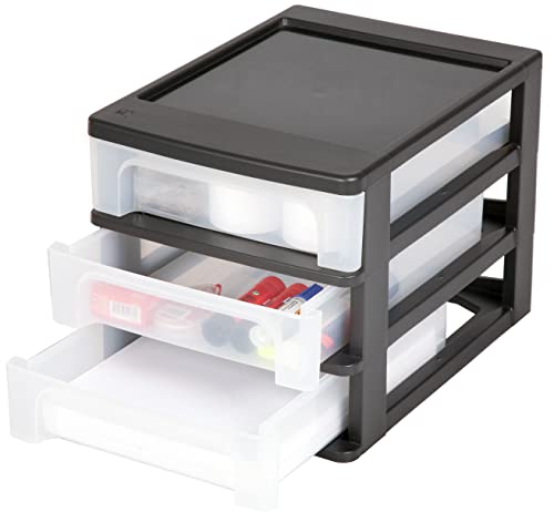 Iris Ohyama, Torre di stoccaggio, organizzatore, 3 cassetti da 4 L, formato A4, cassetti trasparenti, ufficio, soggiorno - Organizer Chest OCH-2030 - Nero