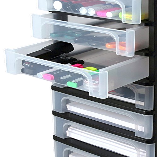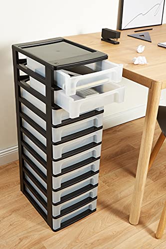 Iris Ohyama, Torre di stoccaggio, organizzatore, 10 cassetti da 4 L, formato A4, cassetti trasparenti, ufficio, soggiorno - Organizer Chest OCH-2100 - Nero