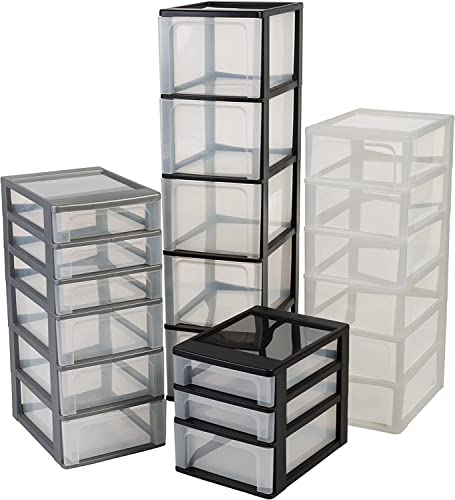 Iris Ohyama, Torre di stoccaggio, organizzatore, 4 cassetti da 13 L, formato A4, cassetti trasparenti, ufficio, soggiorno - Organizer Chest OCH-2400 - Bianco