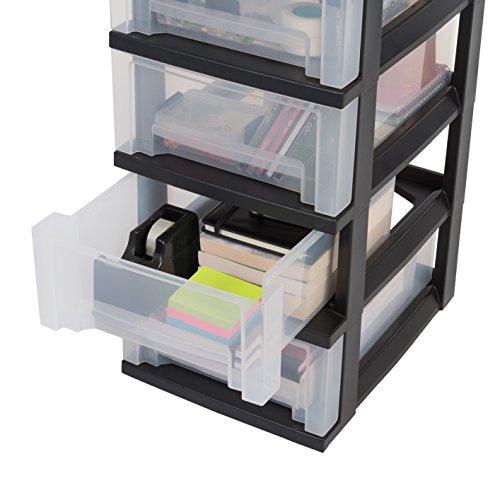 Iris Ohyama, Torre di stoccaggio, organizzatore in plastica, 4 x 16 L, con ruote, multifunzionale, robusto, A4, ufficio, camera da letto, soggiorno - Cassettiera intelligente SDC-304 - Nero