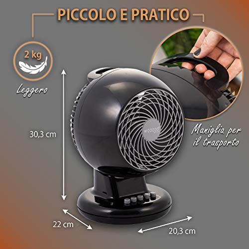 Iris Ohyama Woozoo PCF-M15, Ventilatore da Tavolo, Potente e Silenzioso, 32W, Oscillante, Regolabile Verticalmente, Maniglia, 3 Velocità, Per Area 13M², Nero