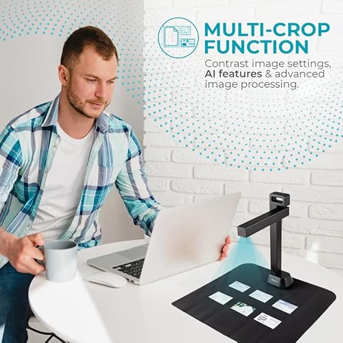 IRIScan Desk scanner per laptop e scanner a3 di documenti - v6pro: libro mastro, editor PDF gratuito scanner portatile scanner per libri, appiattimento AI, scansione automatica AI, 13MP/21MP, Win Mac