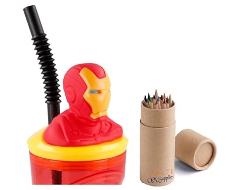 Iron Man Character 3D - Bicchiere per bambini con cannuccia 23 x 7,5 x 7,5 x 7,5 cm