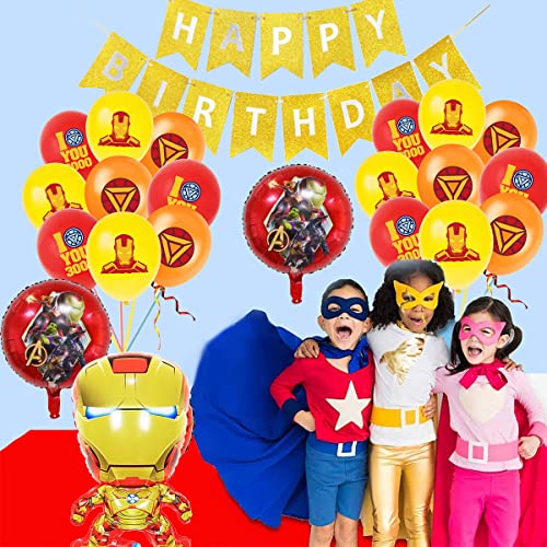 Iron Man Set Decorazioni,Tomicy 22PCS Decorazione per Festa di Compleanno, Banner Cake Toppers Kit di Decorazioni per Feste di Compleanno di Palloncino,Ideale per Decorare Le tue Feste.