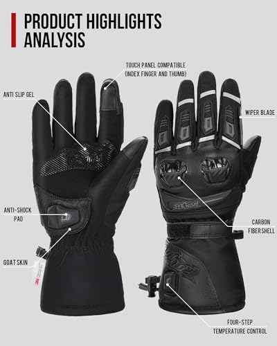 IRON JIA'S Guanti Riscaldati,Guanti Moto Riscaldati per Uomo Donna,4 Livelli di Riscaldamento,Guanti Moto Invernali Caldi Outdoor con Protezione Nocche,Ricaricabili,Impermeabili,Touchscreen,M