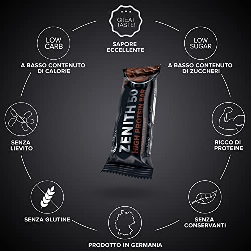 IronMaxx Zenith 50 XL barretta ad alto contenuto proteico - cioccolato 12 x 100g | 50% di proteine | basso contenuto di carboidrati, a basso contenuto di zucchero con aminoacidi importanti