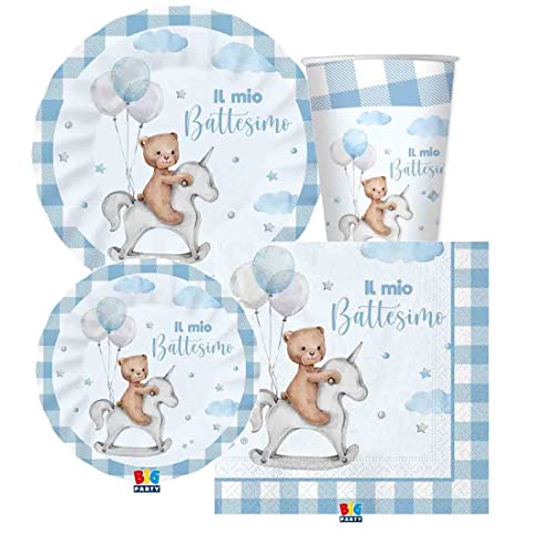 Irpot kit n.47 battesimo teddy bear celeste bambino decorazioni piatti carta piatti dessert bicchieri tovaglioli azzurro party festa battezzo bimbo pastello scacchi